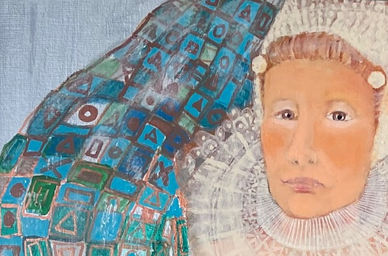 In mijn schilderijen komen vaak folkloristische elementen terug. Dat gaat vanzelf, hoewel mijn schoonmoeder een echte Scheveningse was! Dus wie weet heeft het invloed gehad!